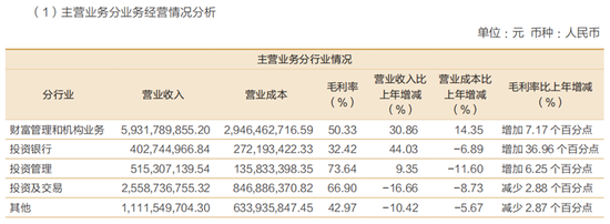 分业务来看,招商证券的财富管理和机构业务包含经纪与财富管理、资本中介和机构客户综合服务等三大细分板块。上半年,该业务实现收入为59.32亿元,同比增长30.86%。该业务成为公司业绩增长的主要动力,显现出业绩增长很大程度依赖于资本市场的活跃。